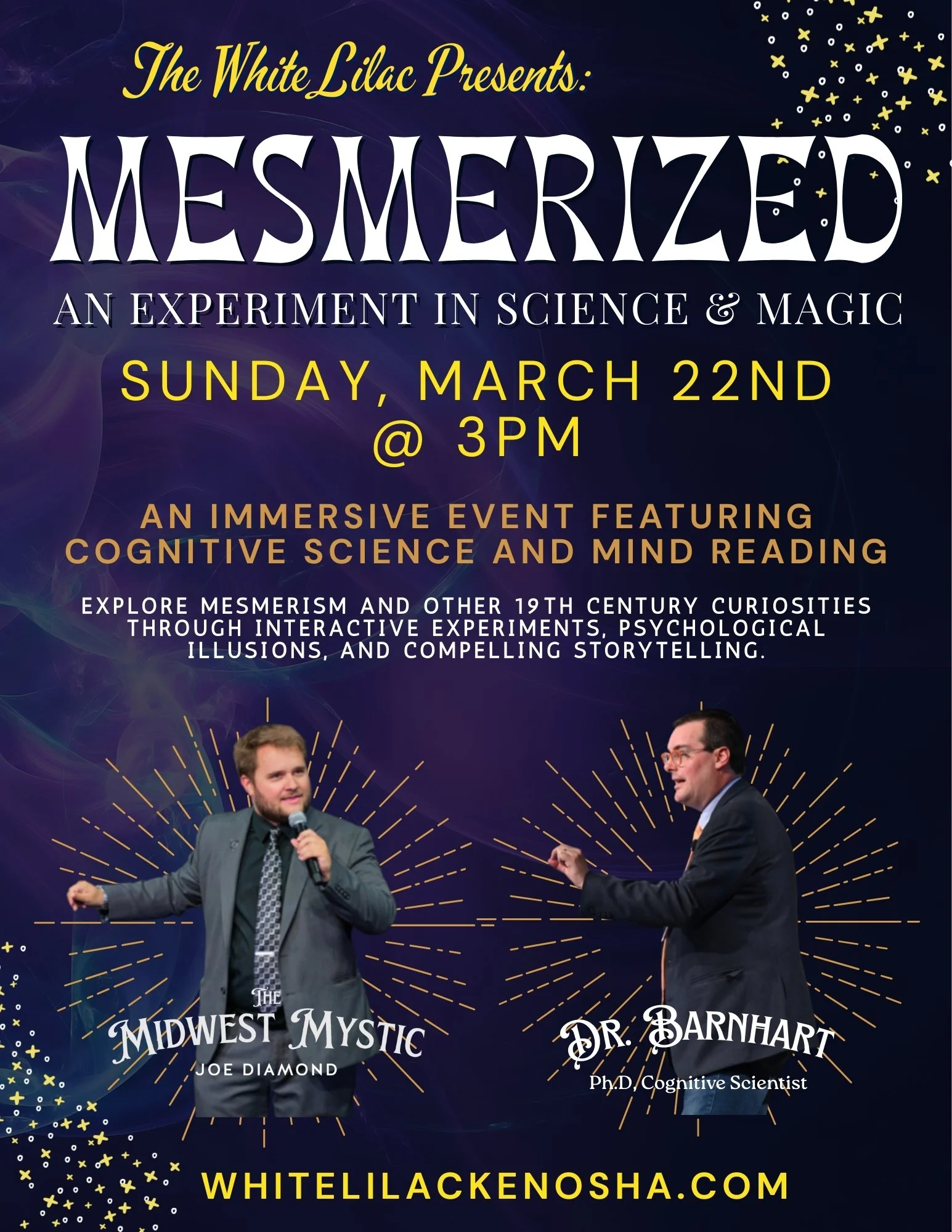 In Mesmerized, cognitive scientist and magician Dr. Anthony Barnhart joins forces with acclaimed mentalist Joe Diamond for an immersive afternoon inspired by that strange and fascinating era.